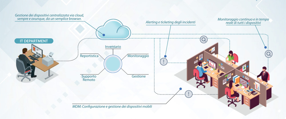 Il modulo di Asset Management in connubio con Asset Inventory fornisce una visione completa di tutti i computer, dispositivi mobile, software e network device, inclusi i loro attributi. Anche questo modulo come gli altri è parte integrante della suite rendendo tutti i processi fluidi ed omogenei tra loro.